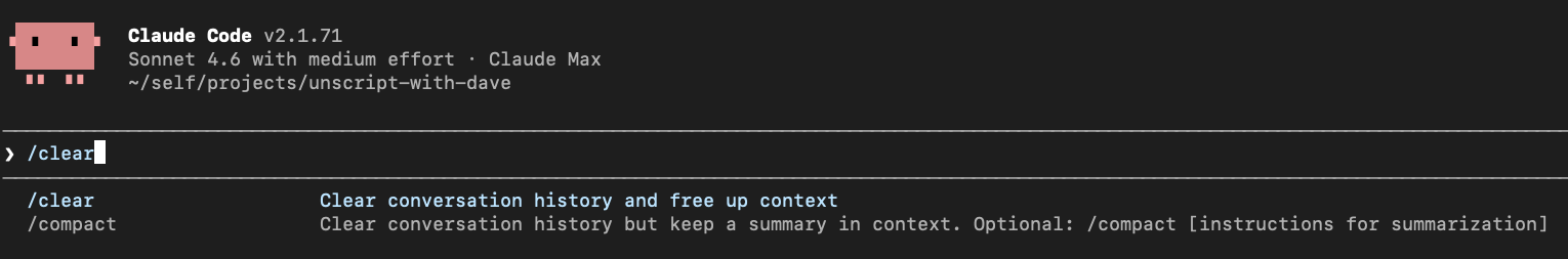 當我在使用 AI 工具時,除了計畫模式(/plan ),我最常用的兩個指令是 /clear 與 /compact。
