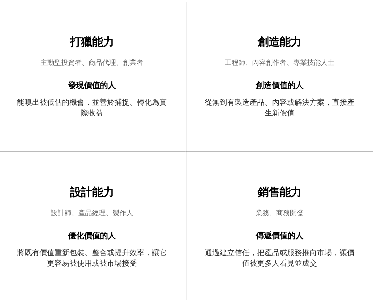 在商業世界中,有四項能夠高效創造財富的核心技能(How to Get Rich):