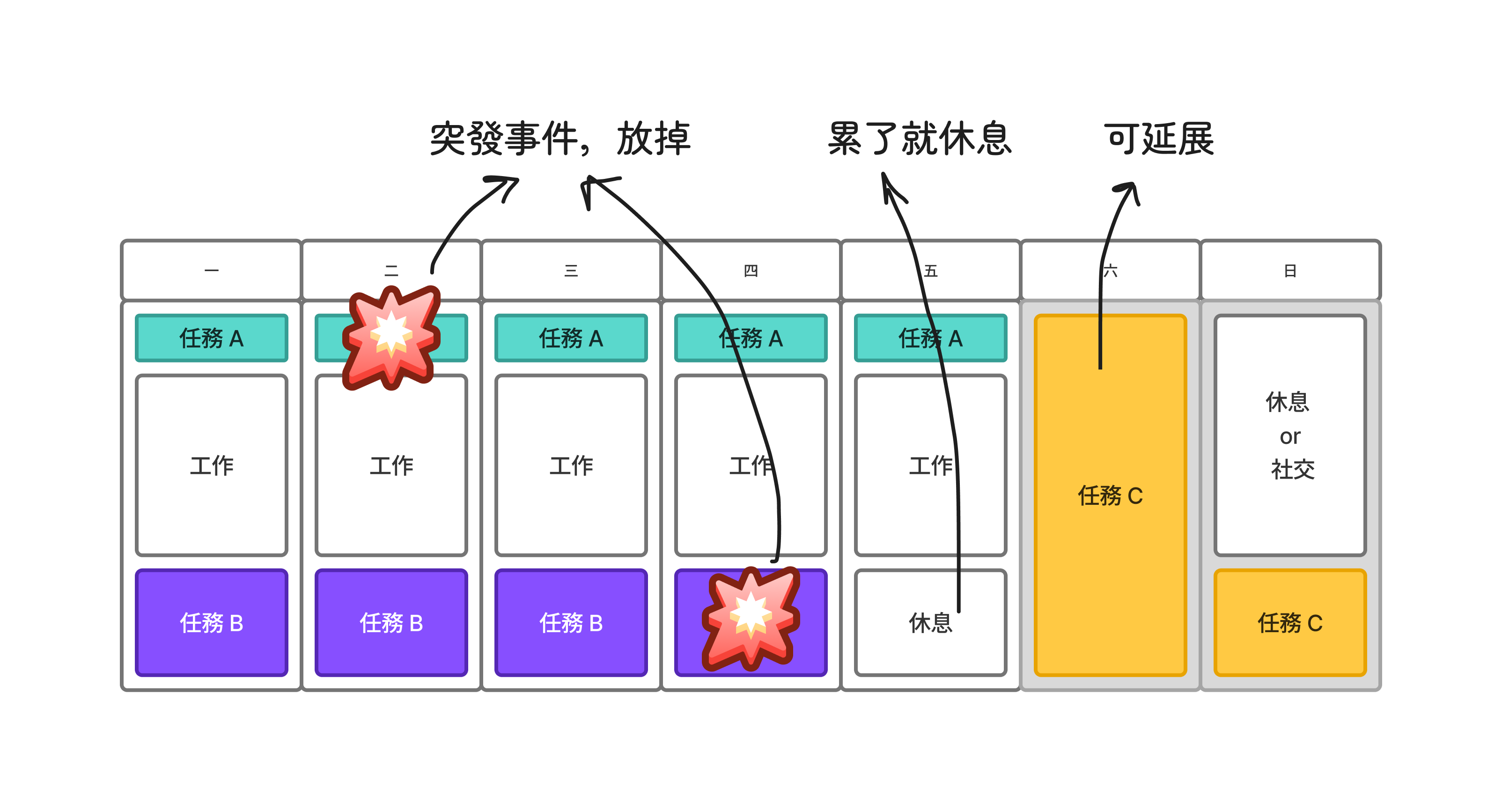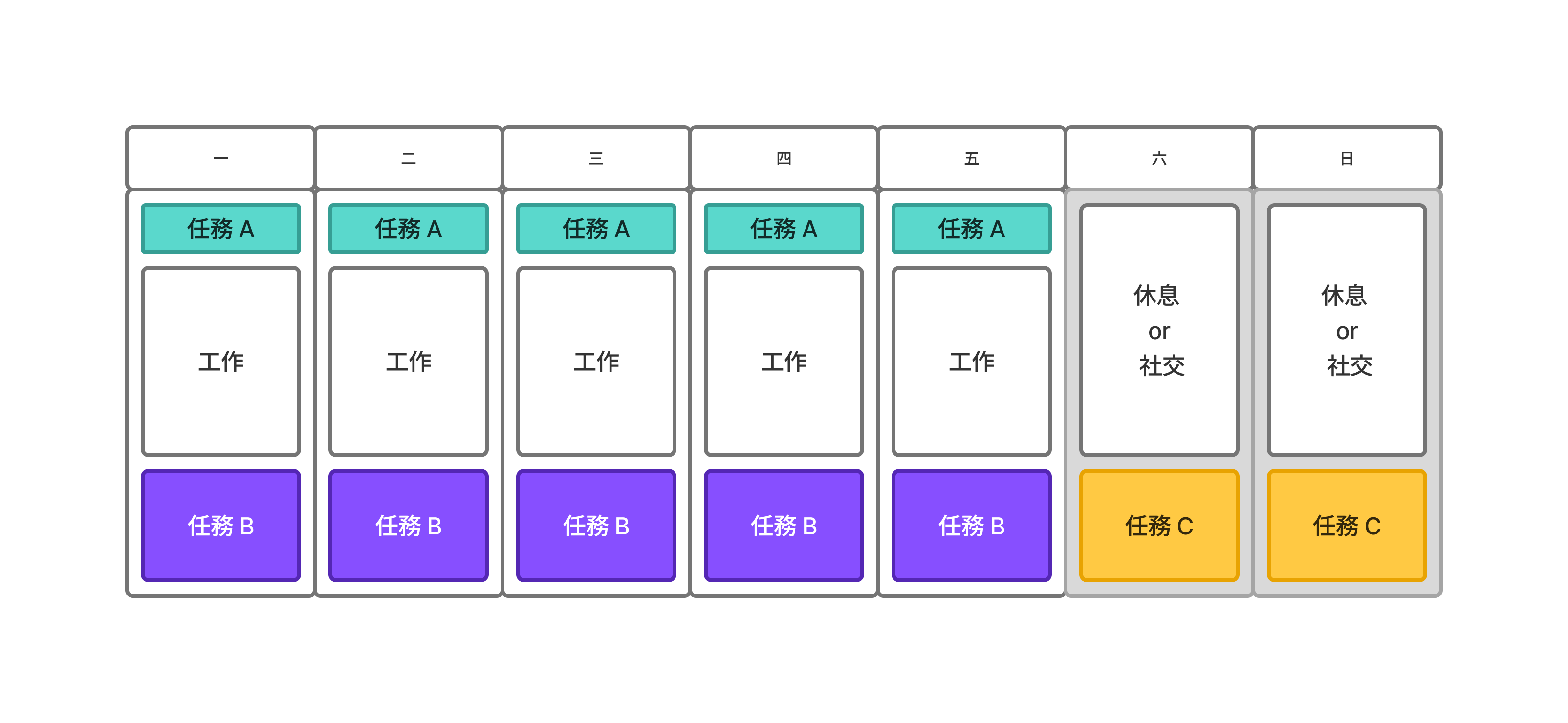 既然我是那種需要一大段 time block 才比較容易做出關鍵產出的人,就更應該簡化任務類別,並把時間預先配置好。